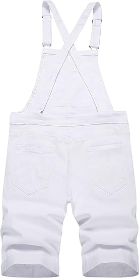 Mens Denim Shorts Bib Overalls Casual Summer Jumpsuit with Pockets