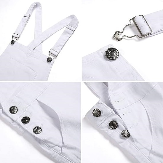 Adjustable Shoulder Straps, Multi Pockets, Button Fly Closure.